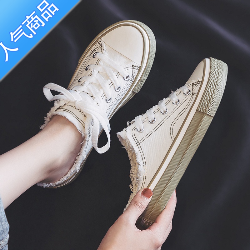SUNTEK半拖帆布鞋女2023年夏季新款学生百搭无后跟一脚蹬ins小白鞋子i 半拖毛边款白绿 35¥53.64热销中 -