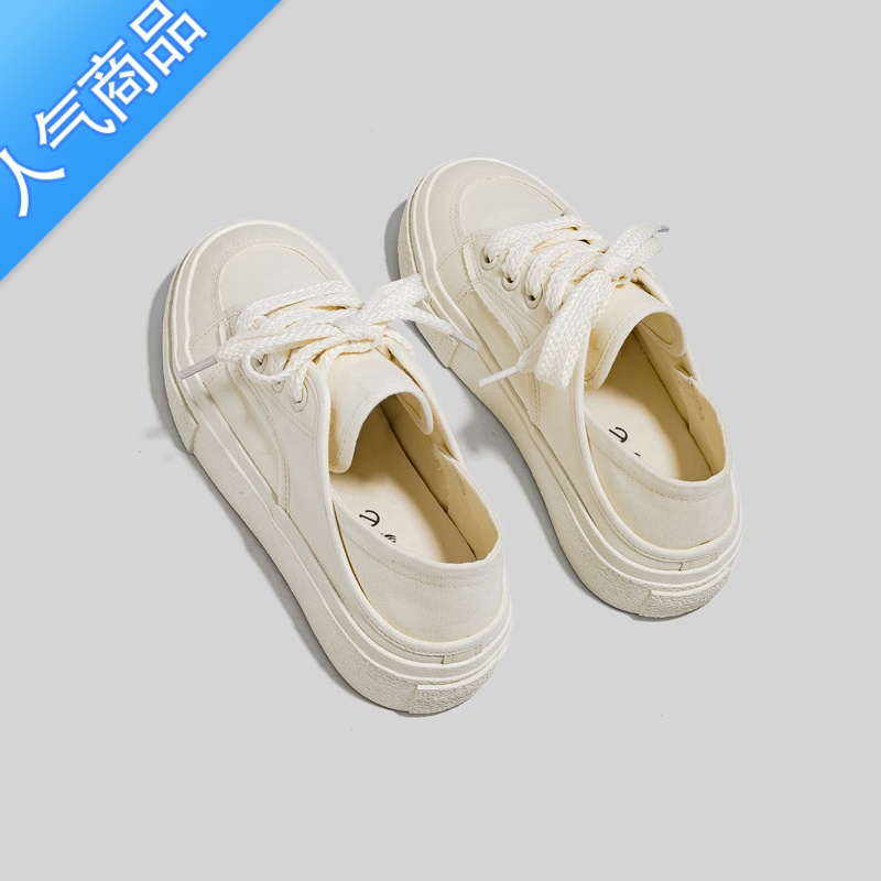 SUNTEK2023夏季新款休闲百搭一脚蹬透气小白鞋厚底两穿半拖踩脚帆布鞋搭 米色 38¥99.00热销中