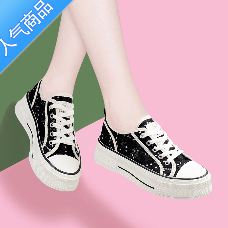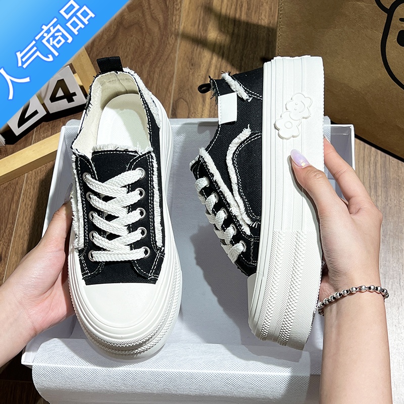 SUNTEK2023年鞋子女潮百搭小众厚底小白鞋女ins夏季薄款学生增高帆布鞋 黑色K128款 35¥50.04热销中 -