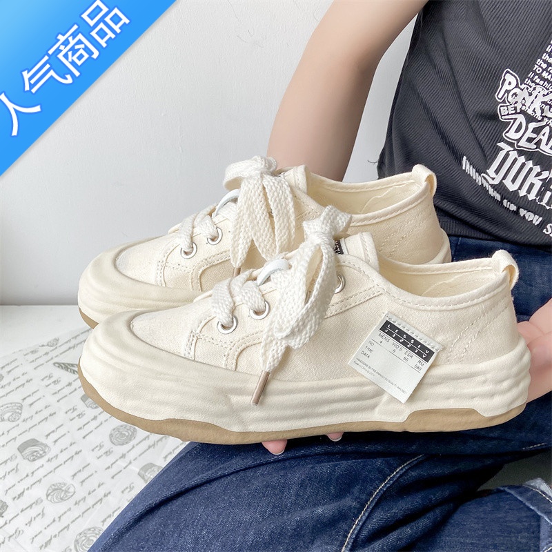 SUNTEK原创小众奶油小白鞋女夏2023年新款学生百搭帆布鞋子潮ins女板鞋 米白色 38¥51.84热销中 -
