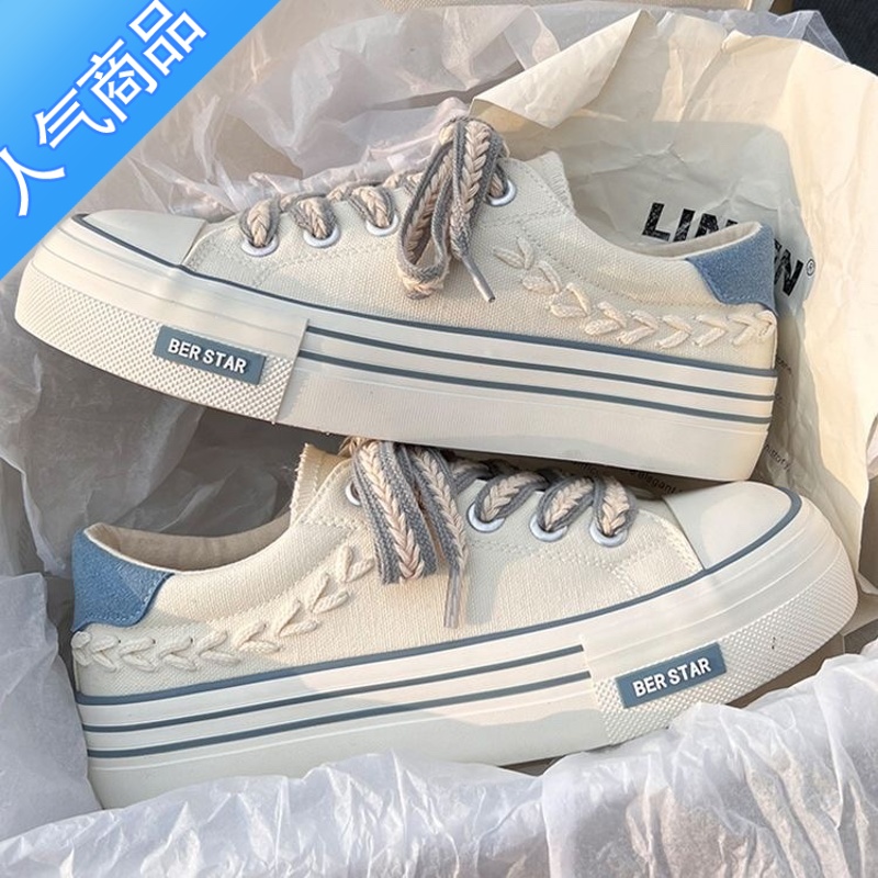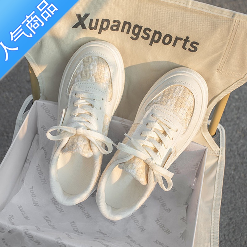 SUNTEK麦穗帆布鞋女港风小白鞋chic小众设计感2023春季百搭厚底休闲板K 米白色 35¥55.44热销中 -