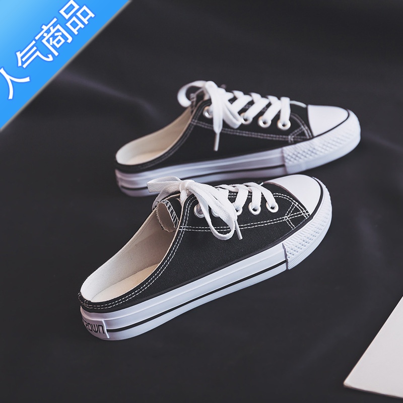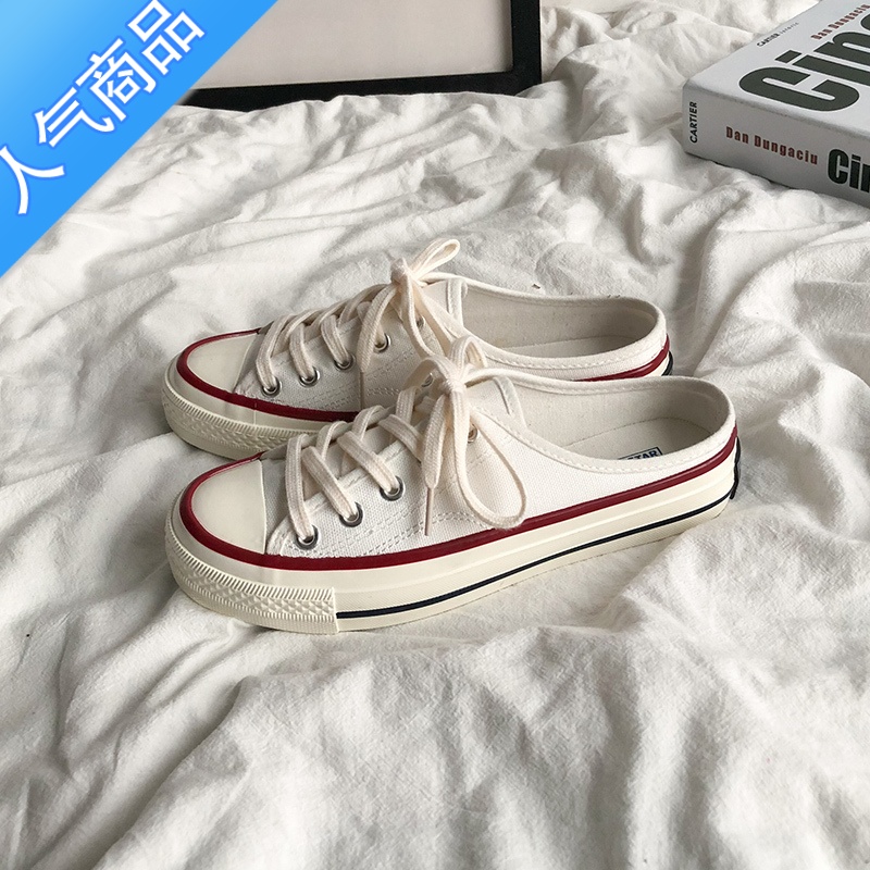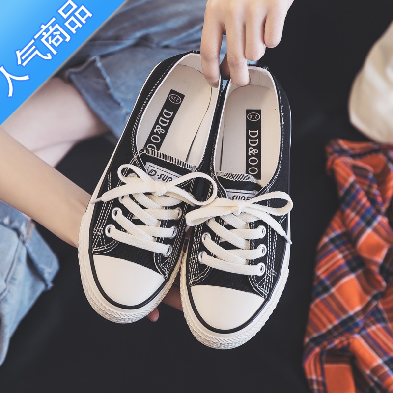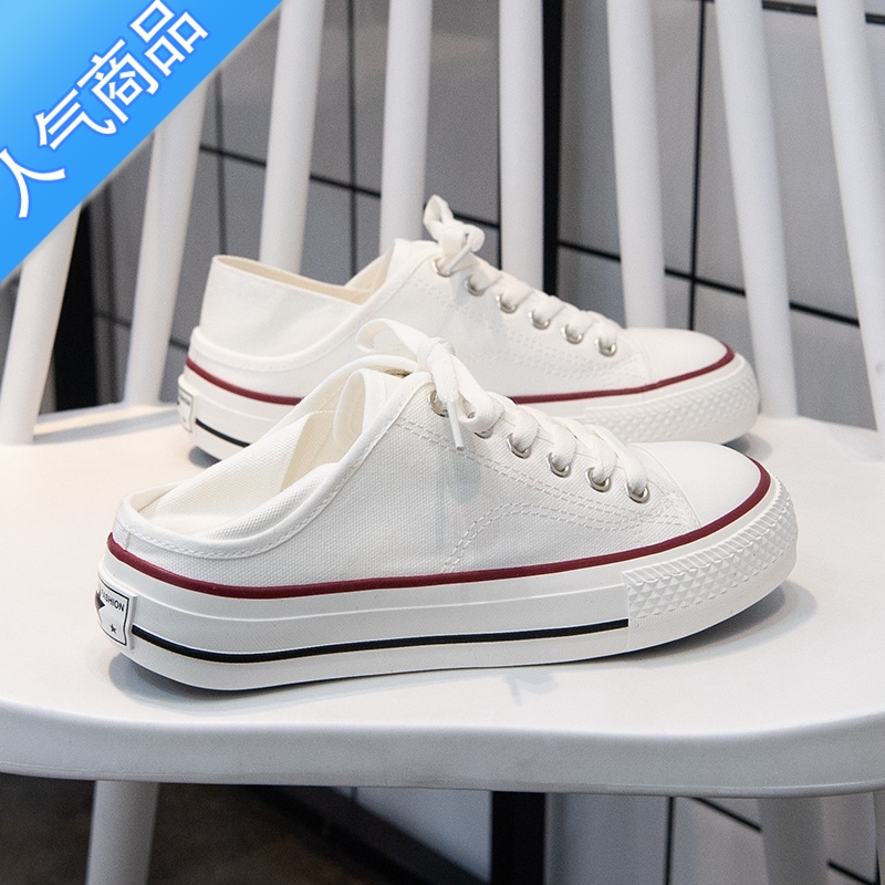 SUNTEK半拖鞋女帆布鞋2023新款学生百搭韩版夏季一脚蹬无后跟懒人鞋潮鞋 白色女码偏大半码 43男码¥70.20热销中 -
