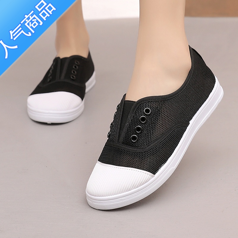 SUNTEK夏季薄款小白鞋女2023新款帆布鞋透气配裙子的鞋子半拖一脚蹬女鞋 黑色 38¥106.20热销中 -