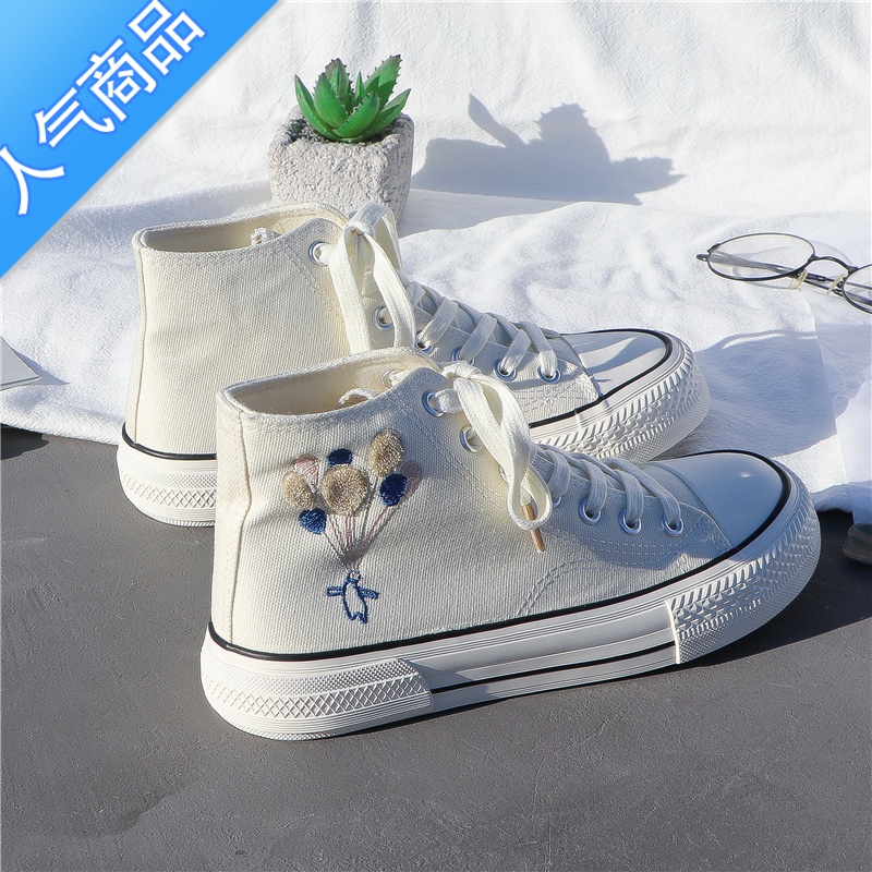 SUNTEK高帮帆布鞋女ulzzang百搭2023年春季新款韩版米色板鞋ins潮新 米白色 36¥81.00热销中 -