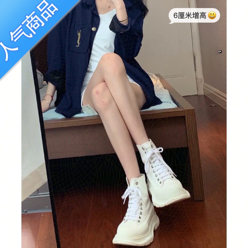 SUNTEK帆布鞋女厚底高帮白鞋小白鞋2023新款春季透气薄款百搭内增高单鞋 白色高帮高质版 35¥320.00热销中 -