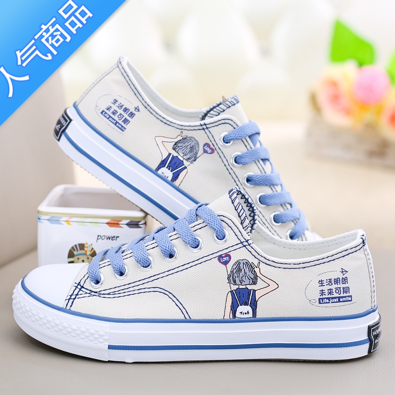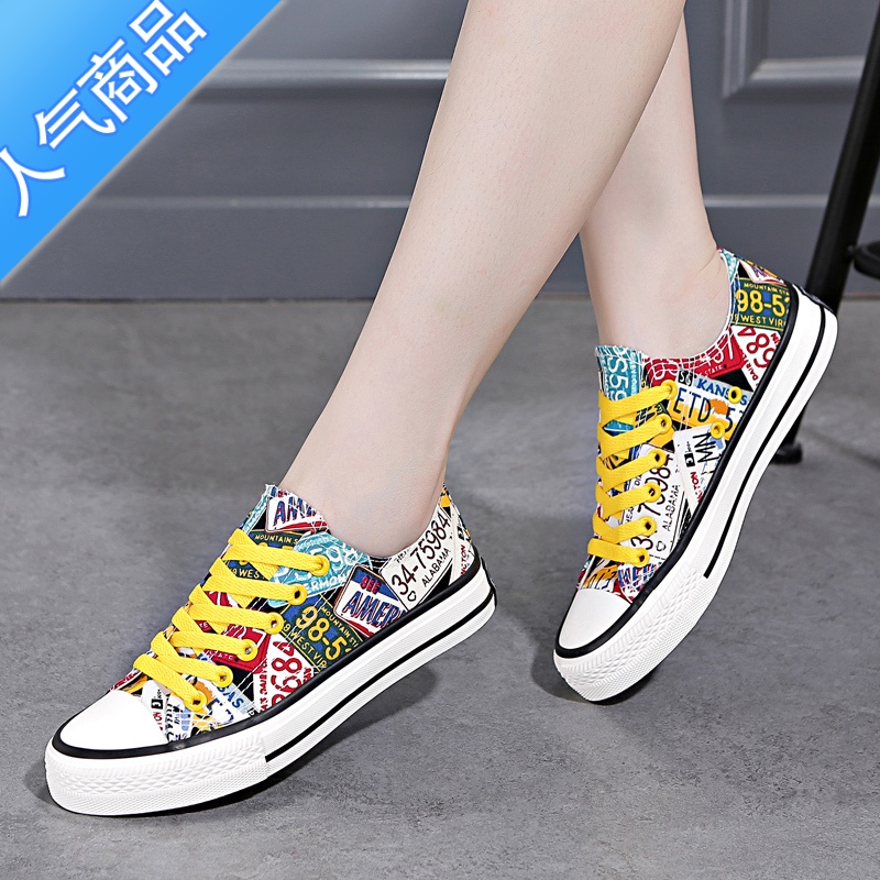SUNTEK涂鸦帆布鞋女2023新款韩版透气休闲百搭嘻哈爆改手绘学生潮流板鞋 黄色 36码¥104.40热销中 -
