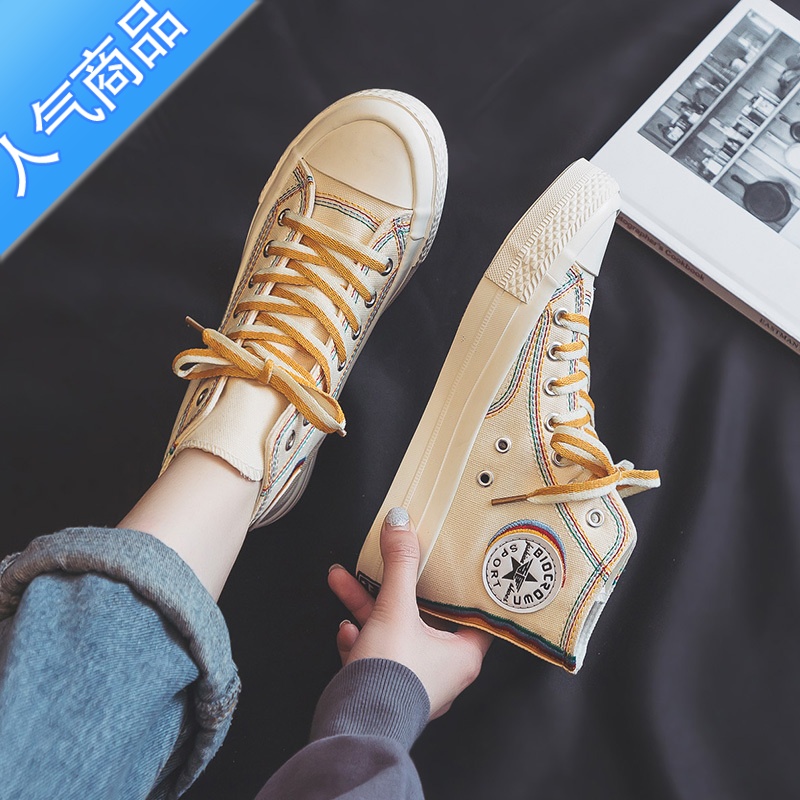 SUNTEK帆布鞋女高帮2023年春季韩版新学生ins潮百搭港风配裙子板高 米色不加绒 35¥99.00热销中 -