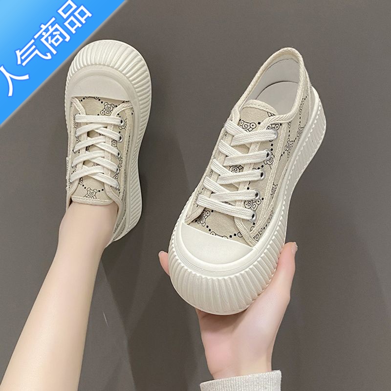 SUNTEK帆布鞋女2023春夏新款厚底饼干鞋子透气小众ins百搭学生休闲板鞋 小熊棕 36¥71.64热销中 -