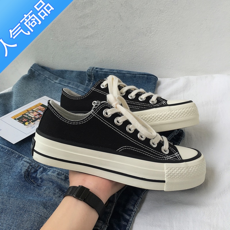 SUNTEK 万年百搭的厚底增高帆布鞋女1970复刻小白鞋休闲小黑鞋潮 高品质黑色 40¥71.82热销中 -