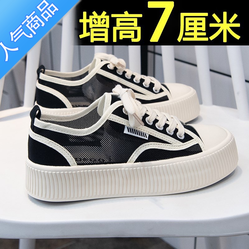 SUNTEK韩国内增高女鞋新款夏薄款透气帆布鞋百搭板鞋小白鞋厚底网面网鞋 黑色网面-4cm偏小一码拍大一码 36¥338.40热销中 -