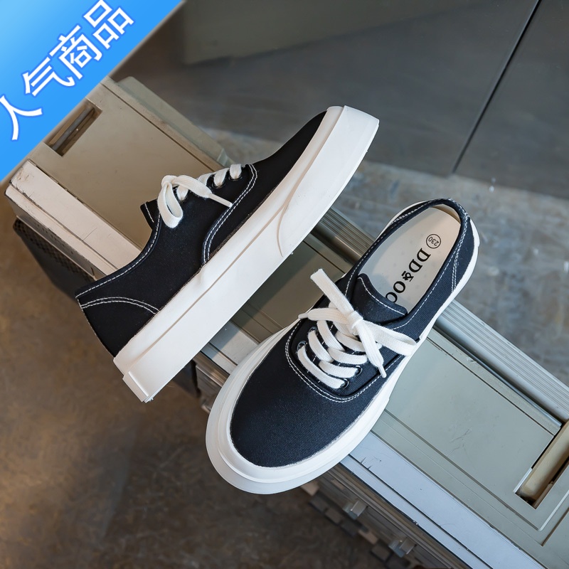 SUNTEK厚底帆布鞋女半拖鞋夏季2023新款一脚蹬ins懒人无后跟小白鞋拖脚 黑色 36¥48.24热销中 -