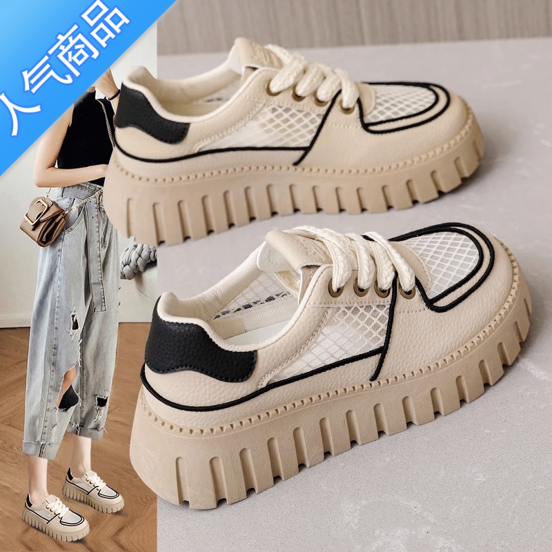 SUNTEK厚底夏款透气百搭小白鞋子女2023年夏季新款休闲网面休闲板鞋 米色 39标准运动码¥95.00热销中 -