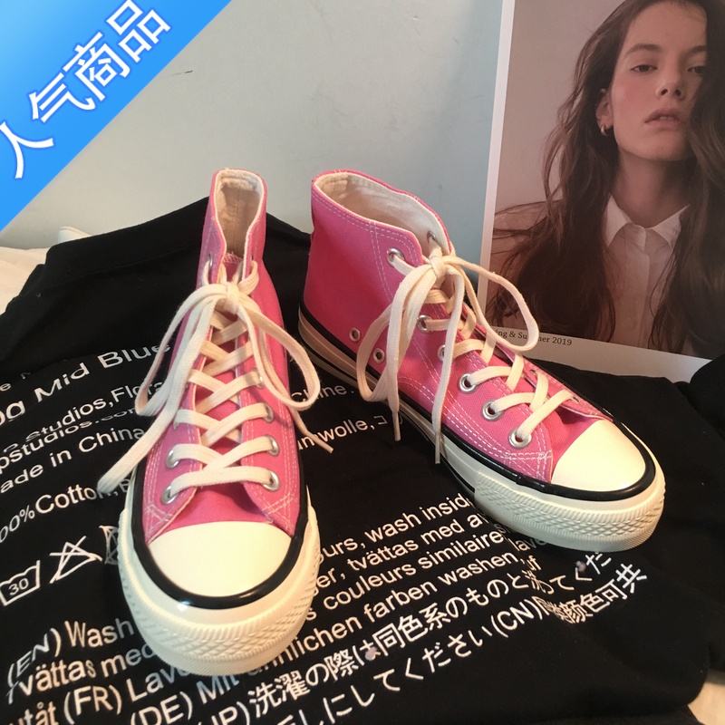 SUNTEK江江欧巴2023新款粉红色帆布鞋女复古港味百搭韩版ulzzangN 粉红色高帮现货 38¥69.84热销中 -