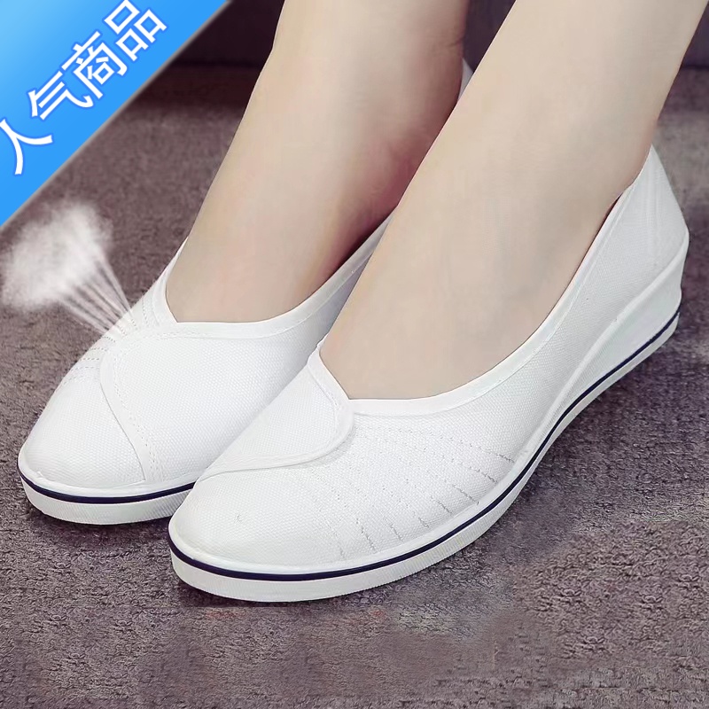 SUNTEK护士鞋一字款软底防滑透气轻便女鞋帆布鞋医院美容院专用鞋小白鞋 护士坡跟 39¥25.02热销中 -