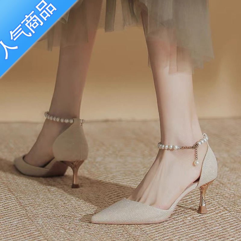 SUNTEK一字带高跟鞋女细跟2023年新款中空尖头单鞋礼服法式水晶鞋不累脚 银色跟高6.5cm 38¥239.00热销中 -