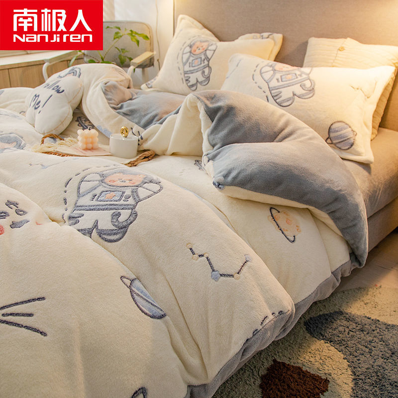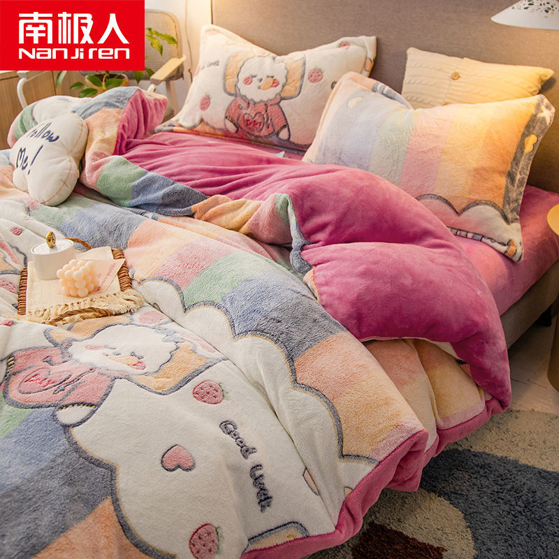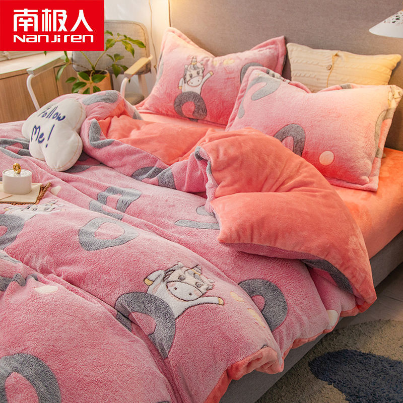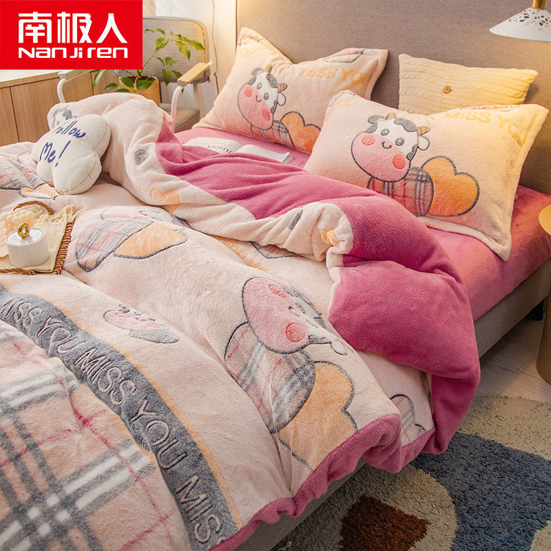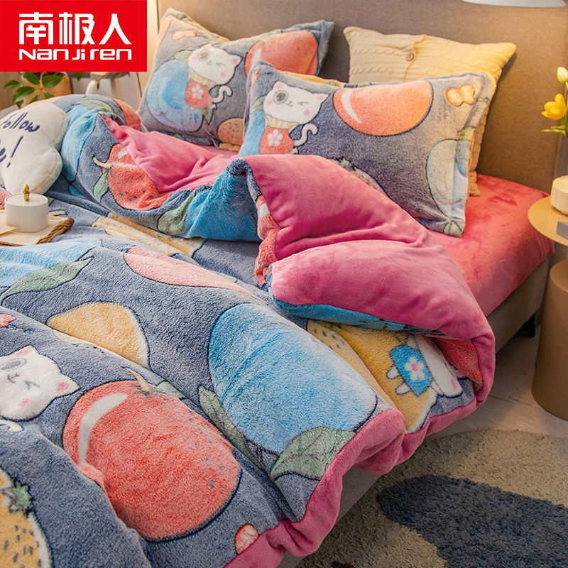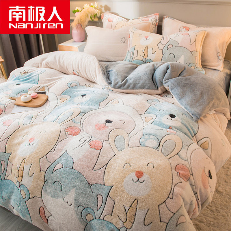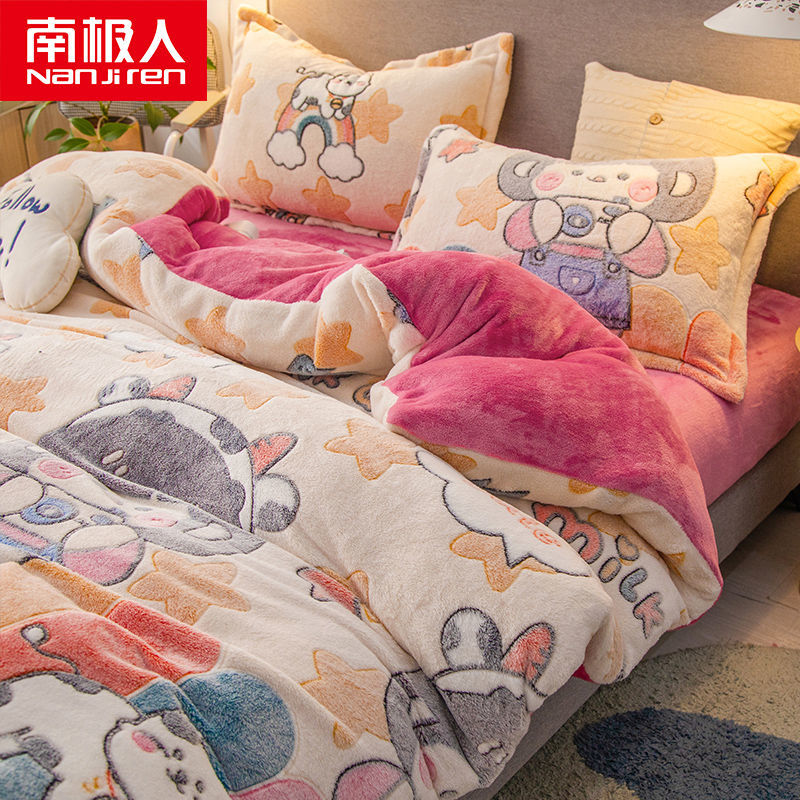 南极人法兰绒四件套床单牛奶绒被套珊瑚绒被子被罩三件套床上用品_63 1.8床单款四件套被套200X230 小小可爱¥128.00热销中 -