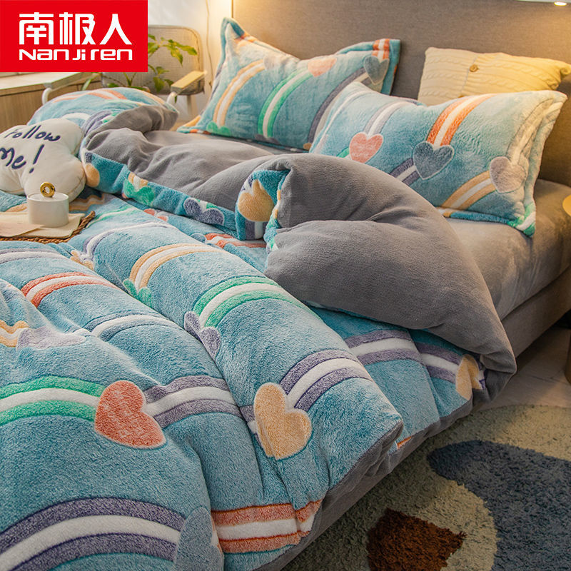 南极人法兰绒四件套床单牛奶绒被套珊瑚绒被子被罩三件套床上用品_63 1.5床单款四件套被套200X230 心动¥128.00热销中 -