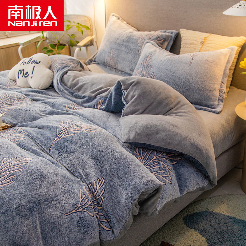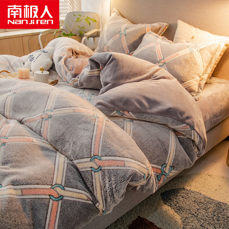 南极人法兰绒四件套床单牛奶绒被套珊瑚绒被子被罩三件套床上用品_63 1.5床单款四件套被套200X230 魅影¥128.00热销中 -