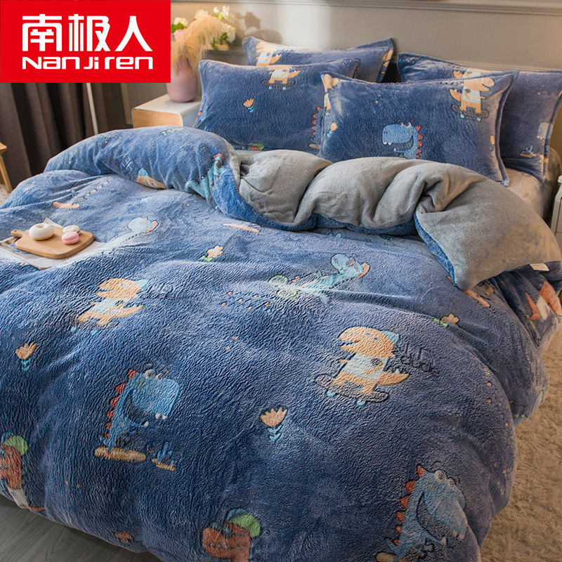 南极人法兰绒四件套床单牛奶绒被套珊瑚绒被子被罩三件套床上用品_63 1.5床单款四件套被套200X230 潮派恐龙¥128.00热销中 -