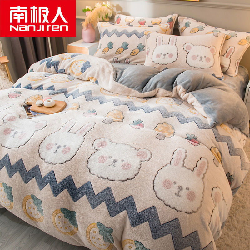 南极人法兰绒四件套床单牛奶绒被套珊瑚绒被子被罩三件套床上用品_63 2.0床单款四件套被套220X240 草莓兔兔¥144.00热销中 -