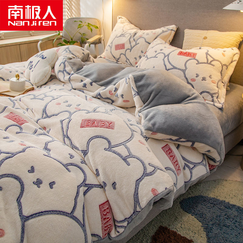 南极人法兰绒四件套床单牛奶绒被套珊瑚绒被子被罩三件套床上用品_63 1.5床单款四件套被套200X230 BABY熊¥128.00热销中 -