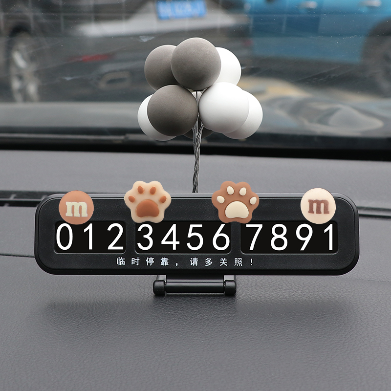 汽车临时停车牌女创意挪车电话牌车载手机号码牌摆件装饰用品大全 M豆小爪子-停车牌+气球满1件打9折¥27.00热销中 -