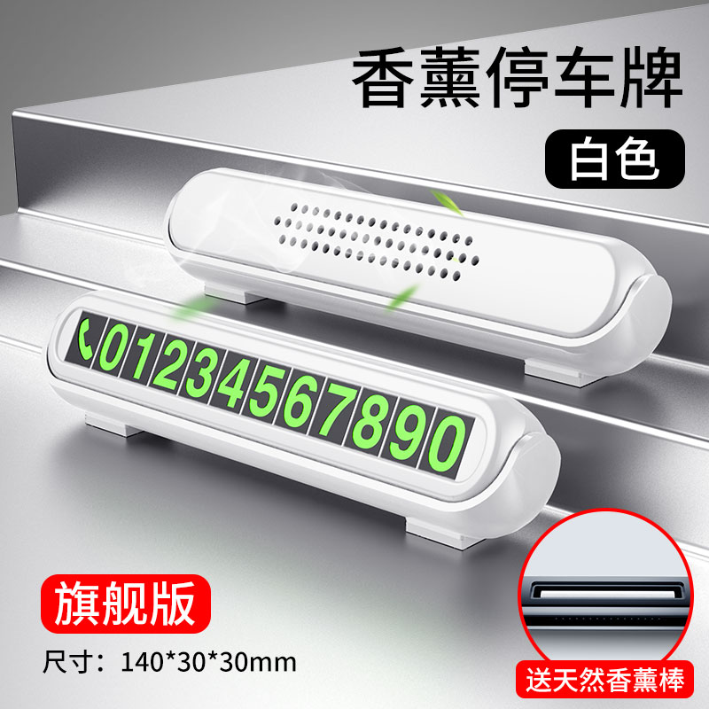 汽车临时停车牌挪车电话号码牌零时车载创意移车车内装饰用品大全 白色【大号】带夜光+香薰棒1支¥13.00热销中 -
