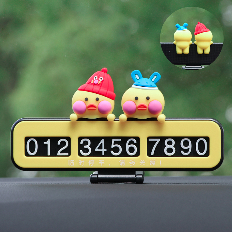 车载临时停车牌挪车电话号码汽车卡通可爱创意摆件移车内用品大 红帽鸭组合+黄牌送6组数字¥23.00热销中 -