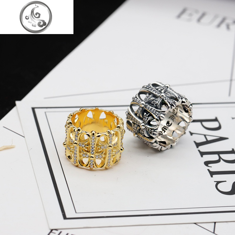 S925纯银饰品克罗星戒指时尚韩版镶钻镀金情侣对戒男款宽版指环 21#金色¥306.00热销中