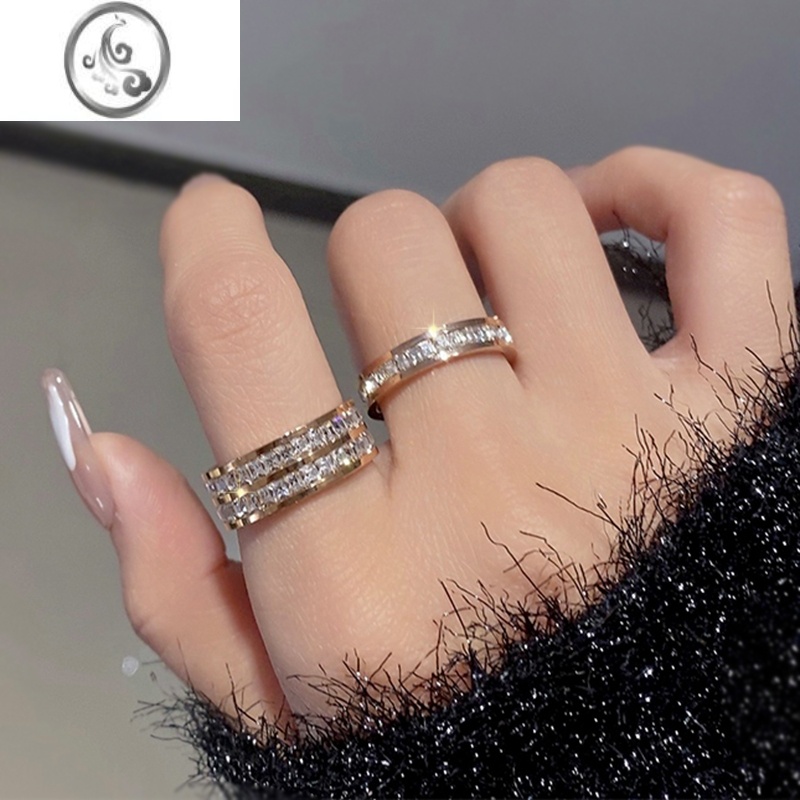 JiMi满天星戒指女小众设计情侣对戒满钻钛钢戒指女ins潮冷淡风食指环 银色双排戒指9号130-160斤¥25.00热销中