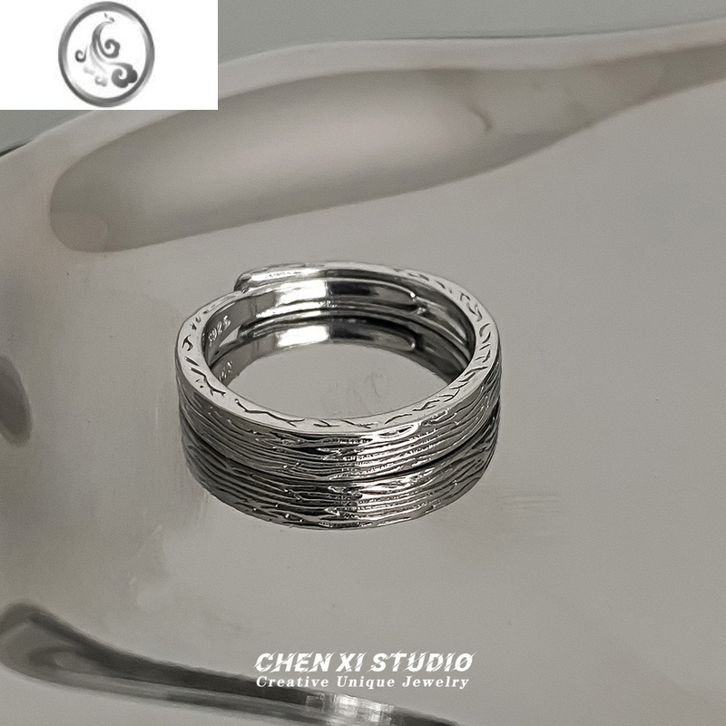 JiMi韩版极简小众高级设计感阶梯开口戒925银银可调戒指指环个性百性 阶梯款¥88.00热销中