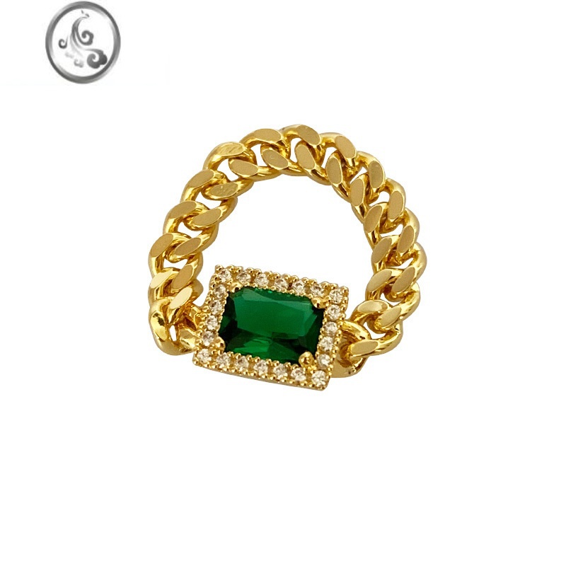 JiMi欧美潮牌复古风黄铜镀金色方牌极简时髦祖母绿宝石镶钻软链条戒方 白钻美码6=港码11¥88.00热销中