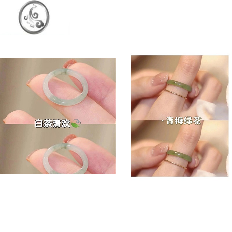 JiMi青梅绿茶小众设计白茶清欢荔枝冻素圈仿玉戒指女江南烟雨古风素戒 草莓红色-芝芝莓莓2个装¥90.00热销中