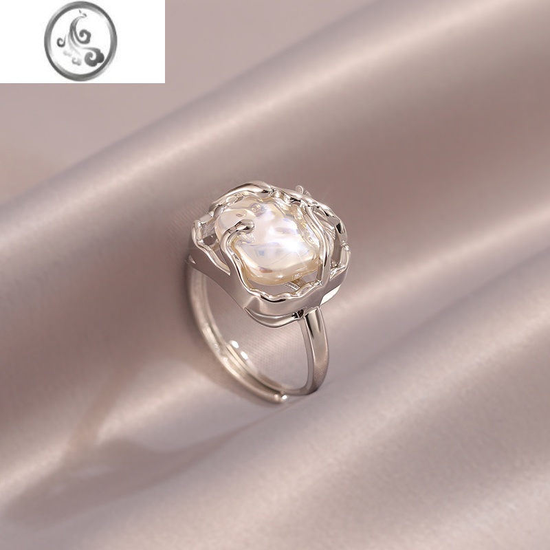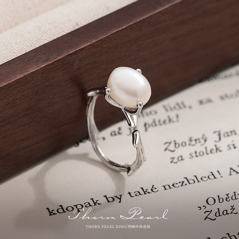 S925纯银天然珍珠戒指女优雅甜美气质百搭指环开口设计手饰品批发 白金色天然珍珠¥59.00热销中