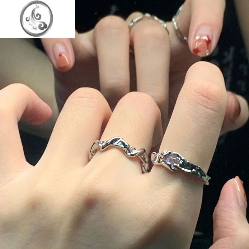 JiMi时尚碎钻戒指女潮设计小众个性轻奢高级感食指戒精致银酷首饰指环 银色一套¥34.00热销中