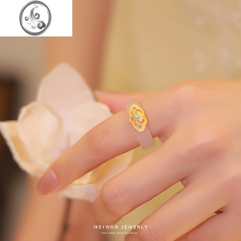 JiMi《盛华年》白玉髓戒指女玛瑙银银荔枝冻古风指环高级礼年 绿色花朵款15码¥106.00热销中