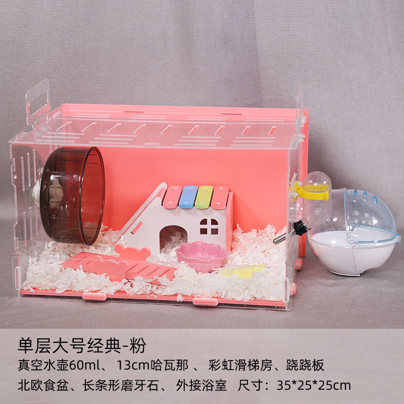 仓鼠笼子亚克力金丝熊窝小花枝鼠大别墅双层套餐玩具用品套装齐全_1 单层大号经典-粉¥99.20热销中 -
