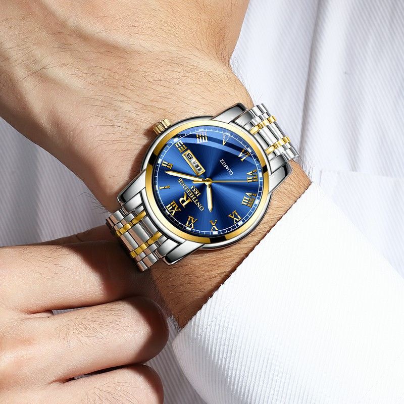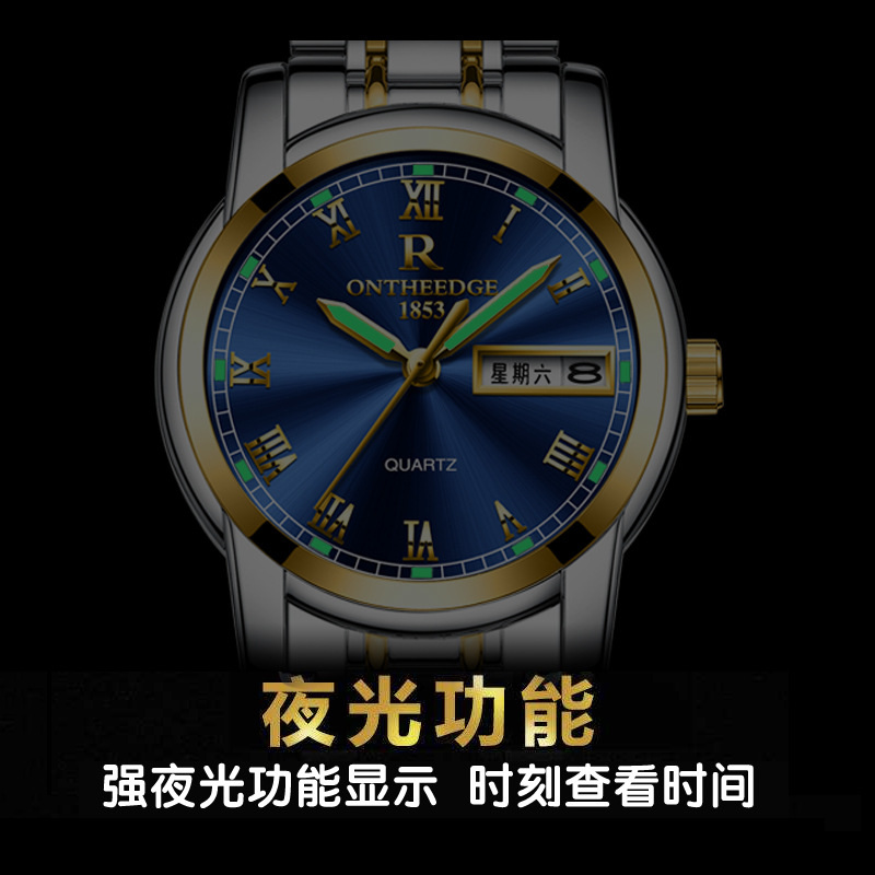 瑞之缘精钢壳钢带钢表男士正品石英表三针商务非机械手表石英腕表 男031钢带蓝底金边¥118.00热销中