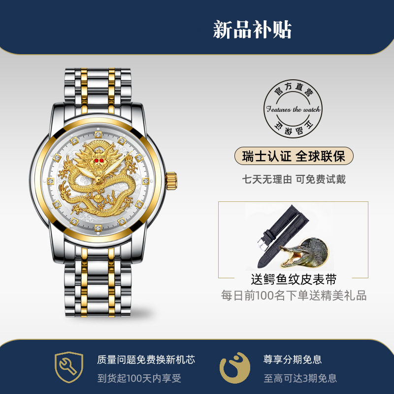 2022瑞之缘镂空手表男士钢带高档石英夜光防水潮流非机械石英腕表 龙表063钢高档白金送皮表带满100元减10元¥188.00热销中