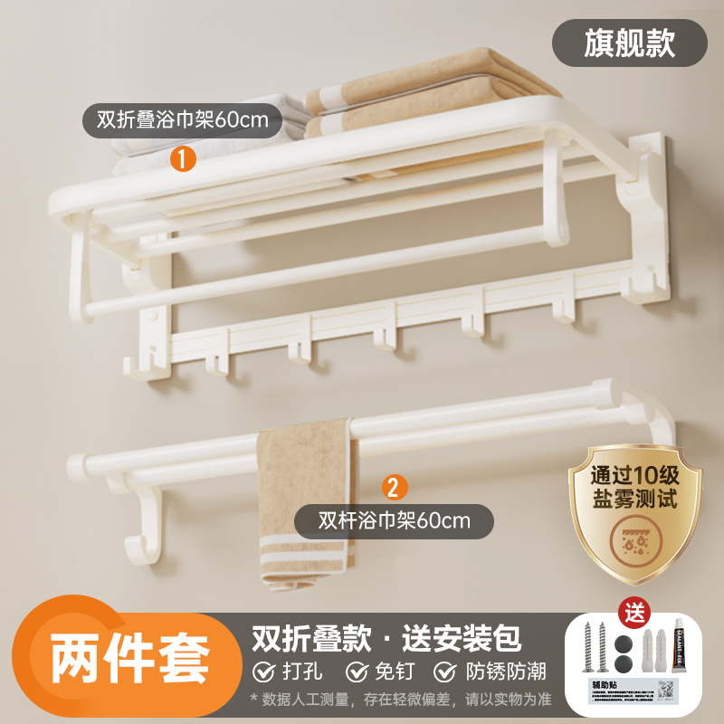 雨虹飞鱼喷塑奶白毛巾架 【旗舰款】D款--双折叠--2件套¥136.25热销中 -