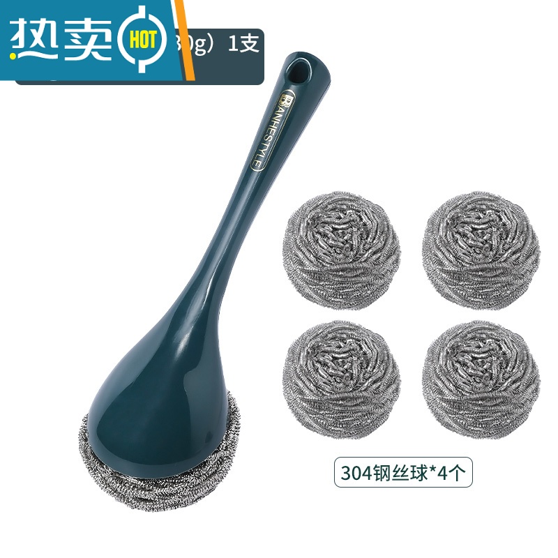 XIANCAI带手柄304钢丝球不掉丝不锈钢家用清洁球厨房家用洗锅刷锅器 墨绿锅刷+【304钢丝球30g】5个球¥45.00热销中