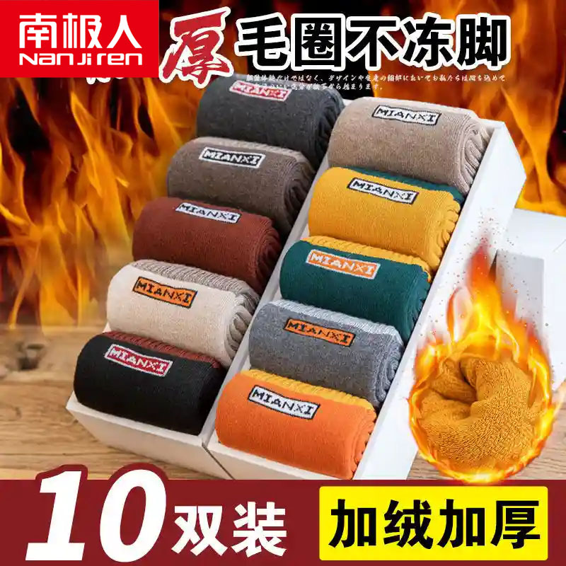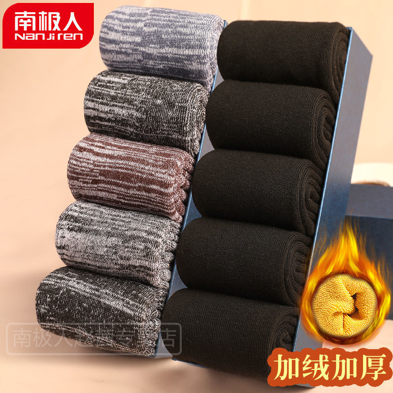 南极人袜子冬季加绒加厚冬天款男士长袜纯棉全棉毛巾羊毛保暖_897 39-45码:冬季加厚男袜 10双:耀黑+元素风¥41.00热销中