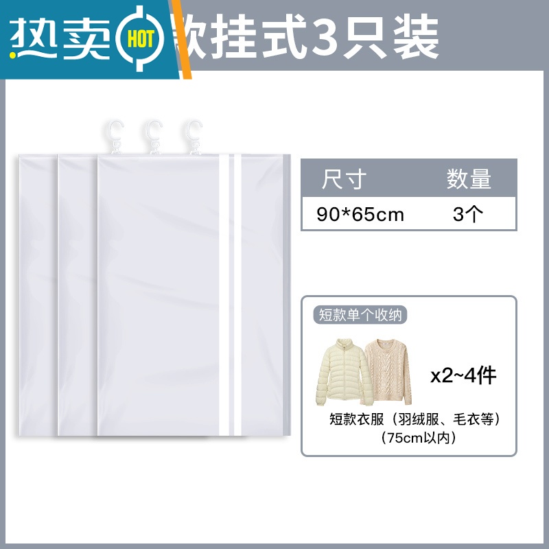 敬平挂式真空压缩袋羽绒服大衣专用袋子棉衣棉服挂袋衣柜衣服收纳器 【短款3只装】可收纳短款衣服12件 电泵套餐【懒人】¥102.00热销中 -