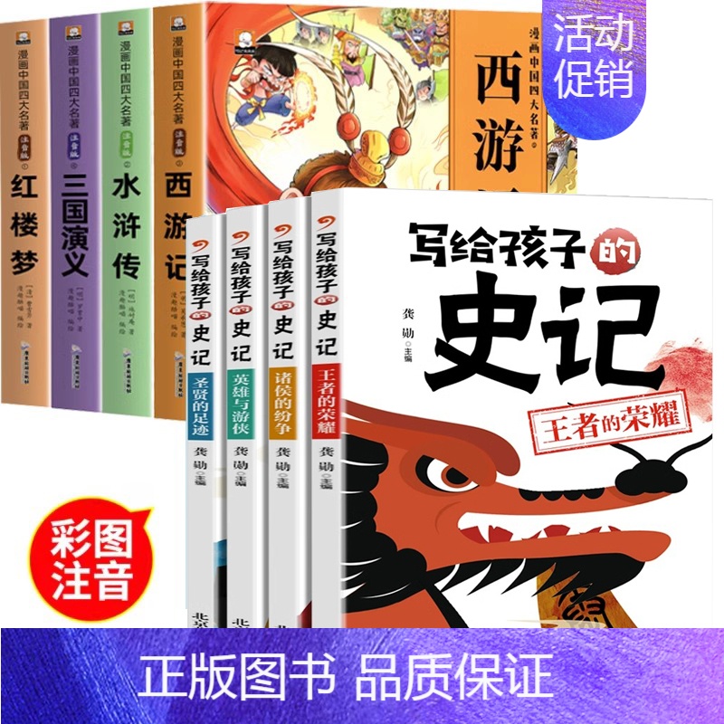 【全8册彩图注音版】四大名著连环画+写给孩子的史记 【正版】漫画中国四大名著连环画全套4册小学生一年级二年级阅读课外书童