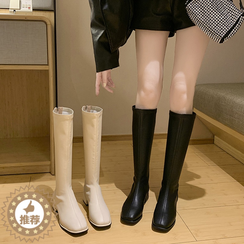 【醉染正版】小个子长靴女不过膝高筒骑士靴秋冬加绒粗跟皮靴白色大码长筒靴子¥158.00热销中 -