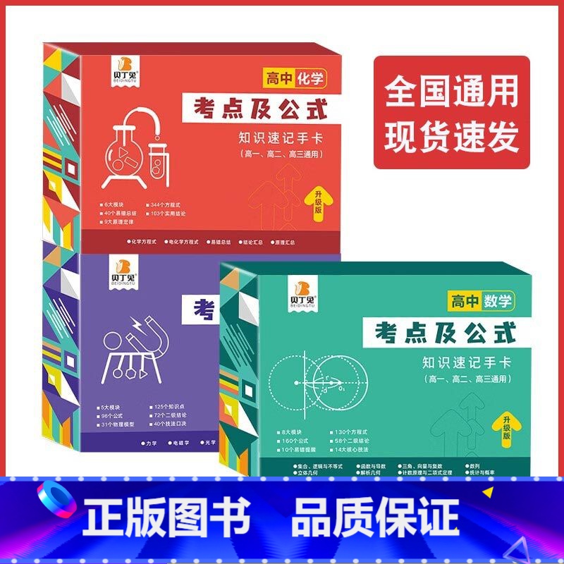 高中(数学+物理+化学)全3套 高中通用 【正版】贝丁兔高中知识考点及公式速记手卡数学物理化学政治历史地理英语物理定理总¥185.00热销中 -
