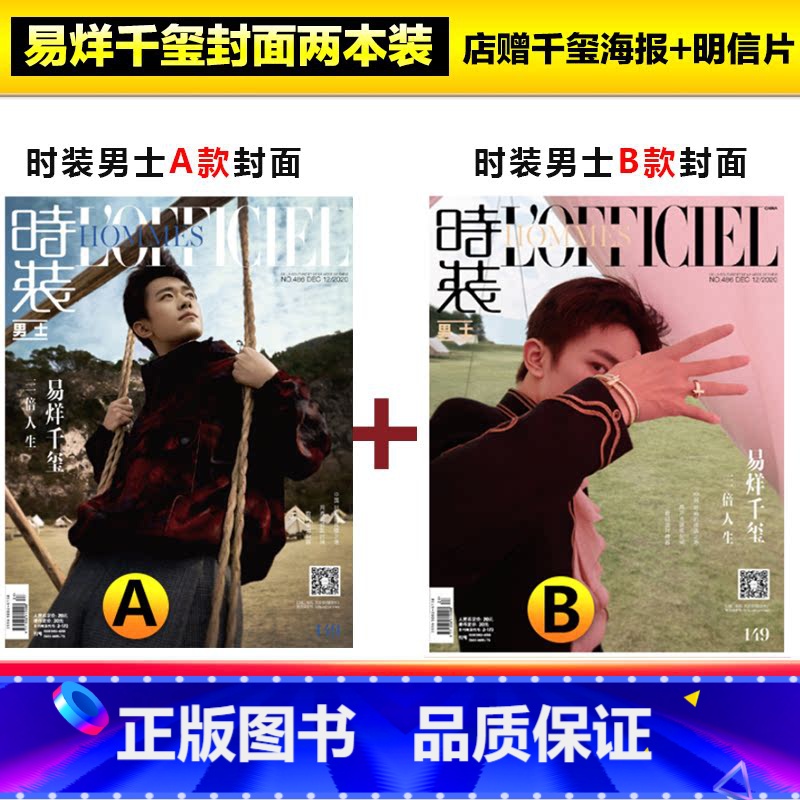 【正版】 时装男士杂志 易烊千玺封面A+B2本套装+店赠千玺海报+明信片+飞机盒 时装男士杂志2020年12月/期