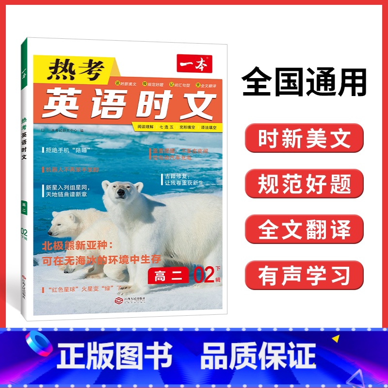 英语 高二下 【正版】2023新版一本 热考英语时文高二02下辑 高二下册英语时文阅读理解完形填空专项强化训练高2英语词¥53.00热销中 -