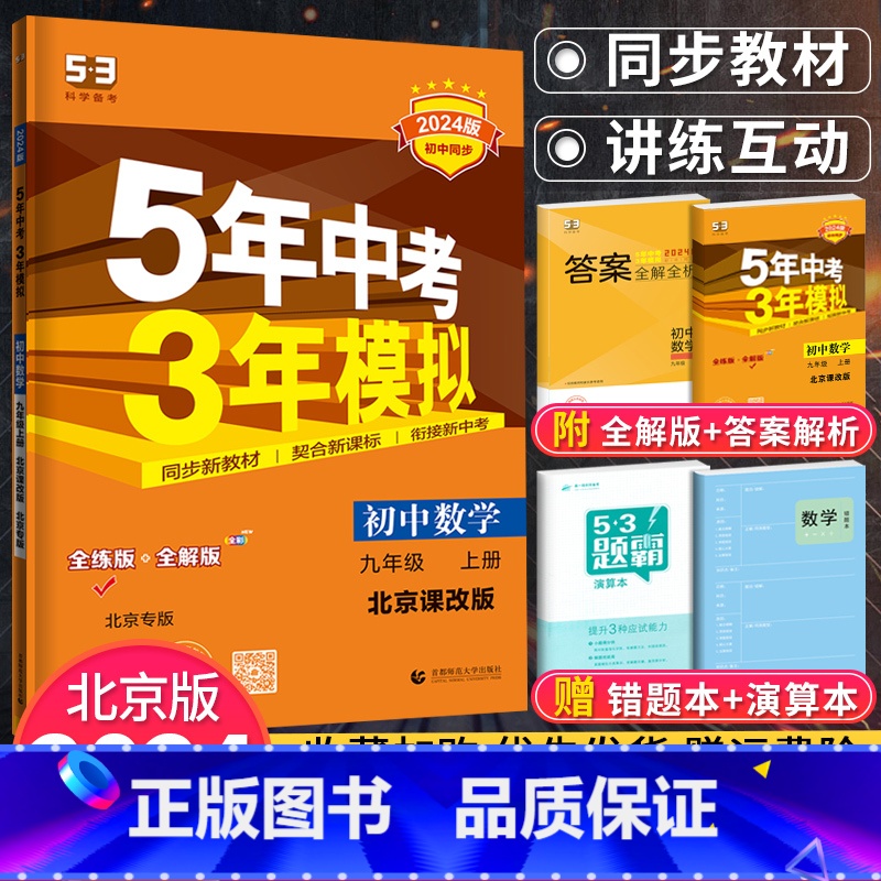 【正版】2024新版 五年中考三年模拟九年级上册数学北京课改版 5年中考3年模拟初中9年级上册数学53初三9年级上册试卷¥47.00热销中 -