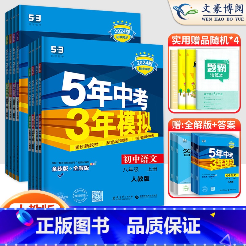 8科】语数英物政史地生八年级上册人教版 八年级/初中二年级 【正版】2024版5五年中考三年模拟八年级上册下册数学语文英¥309.00热销中 -